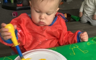 In the Baby & Toddler Room we love getting messy. We enjoy lots of sensory play, exploring different textures such as, shaving foam, beans and jelly play! We also love painting and sticking and being very creative.